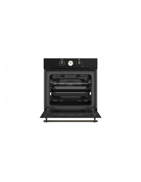 Teka HRB6300AT. Tamanho do forno: Médio, Tipo de forno: Forno elétrico, Capacidade interior do(s) forno(s) totais: 70 l. Cor do produto: Preto, Tipo de controlo: Rotativo, Posição de controlo: Frente. Classe de eficiência energética: A, Consumo energético (convencional): 0,82 kWh, Consumo energético (convecção forçada): 0,76 kWh. Tipo de lâmpada: Halogénio, Localização de iluminação: Topo, Potência da lâmpada incluída: 25 W. Comprimento: 595 mm, Largura: 537 mm, Altura: 595 mm ;