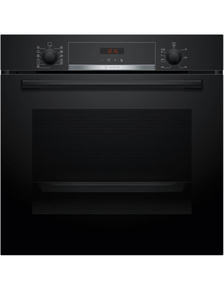 Bosch Serie 4 HBA574BB3. Tamanho do forno: Médio, Tipo de forno: Forno elétrico, Capacidade interior do(s) forno(s) totais: 71 l. Local de colocação: Embutido, Cor do produto: Preto, Tipo de controlo: Rotativo, Toque. Tipo de temporizador: Digital. Classe de eficiência energética: A+, Consumo energético (convencional): 0,94 kWh, Consumo energético (convecção forçada): 0,69 kWh. Quantidade de lâmpadas: 1 lâmpada(s), Tipo de lâmpada: Halogénio ;