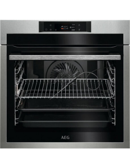 AEG BPE742380M. Tamanho do forno: Médio, Tipo de forno: Forno elétrico, Capacidade interior do(s) forno(s) totais: 71 l. Local de colocação: Embutido, Cor do produto: Preto, Aço inoxidável, Tipo de controlo: Toque. Tipo de relógio: Electrónico. Classe de eficiência energética: A++, Consumo energético (convencional): 0,52 kWh, Consumo energético (convecção forçada): 1,09 kWh. Tipo de lâmpada: Halogénio