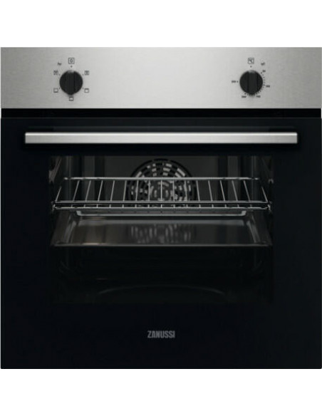 Zanussi ZOHNC0X2. Tamanho do forno: Médio, Tipo de forno: Forno elétrico, Capacidade interior do(s) forno(s) totais: 58 l. Local de colocação: Embutido, Cor do produto: Preto, Aço inoxidável, Tipo de controlo: Rotativo. Classe de eficiência energética: A, Consumo energético (convencional): 0,89 kWh, Consumo energético (convecção forçada): 0,75 kWh. Comprimento do compartimento de instalação: 56 cm, Largura do compartimento de instalação: 55 cm, Altura do compartimento de instalação: 59 cm
