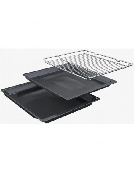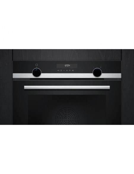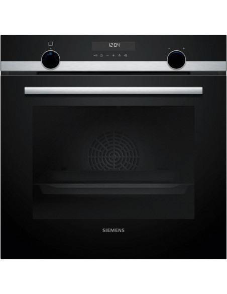 Siemens iQ500 HB578GES7. Tamanho do forno: Médio, Tipo de forno: Forno elétrico, Capacidade interior do(s) forno(s) totais: 71 l. Local de colocação: Embutido, Cor do produto: Preto, Aço inoxidável, Tipo de controlo: Toque. Tipo de relógio: Electrónico, Aplicações de controlo suportadas: Home Connect. Classe de eficiência energética: A+, Consumo energético (convencional): 0,94 kWh, Consumo energético (convecção forçada): 0,69 kWh. Tipo de lâmpada: Halogénio ;