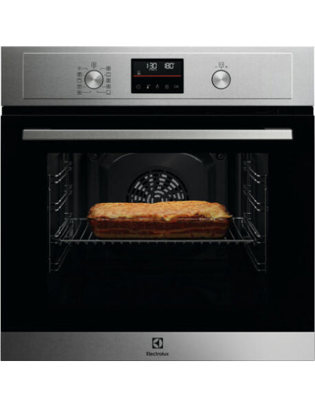 Electrolux EOH4P46BX. Tamanho do forno: Médio, Tipo de forno: Forno elétrico, Capacidade interior do(s) forno(s) totais: 65 l. Local de colocação: Embutido, Cor do produto: Aço inoxidável, Tipo de controlo: Rotativo, Toque. Tipo de relógio: Electrónico. Classe de eficiência energética: A+, Consumo energético (convencional): 0,94 kWh, Consumo energético (convecção forçada): 0,67 kWh. Quantidade de lâmpadas: 1 lâmpada(s), Tipo de lâmpada: Halogénio, Potência das lâmpadas: 40 W