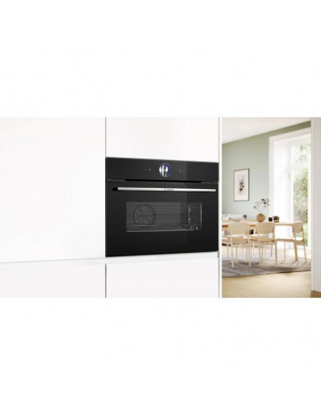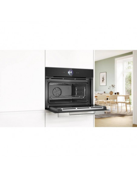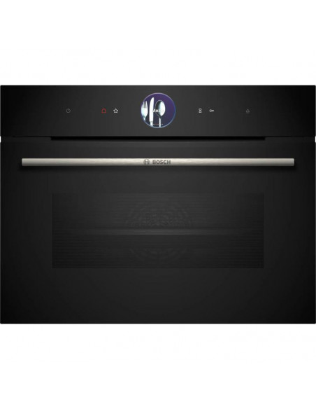 Bosch Serie 8 CSG7361B1. Tamanho do forno: Médio, Capacidade interior do(s) forno(s) totais: 47 l, Intervalo de temperatura de cozedura: 30 - 250 °C. Cor do produto: Preto, Tipo de controlo: Toque, Comprimento do fio: 1,5 m. Classe de eficiência energética: A+, Escala de eficiência energética: A+++ a D, Carga ligada: 3300 W. Largura: 594 mm, Profundidade: 548 mm, Altura: 455 mm ;