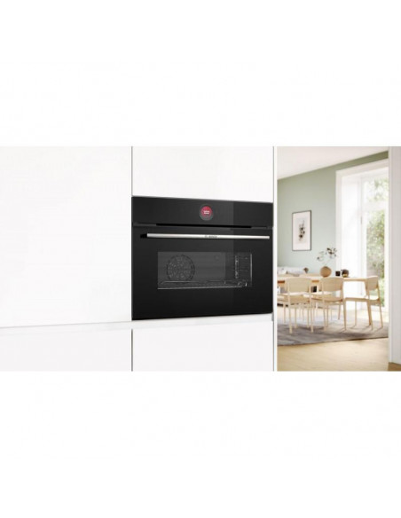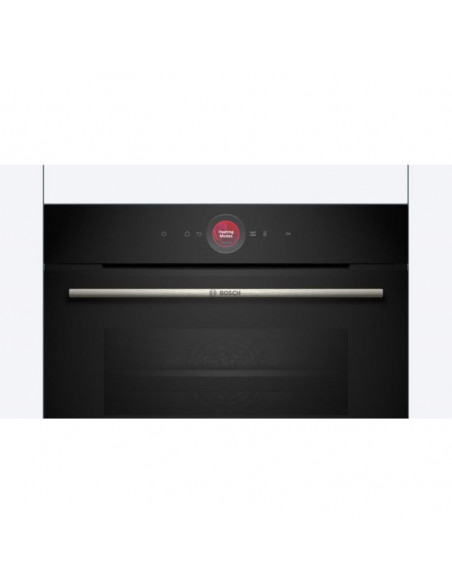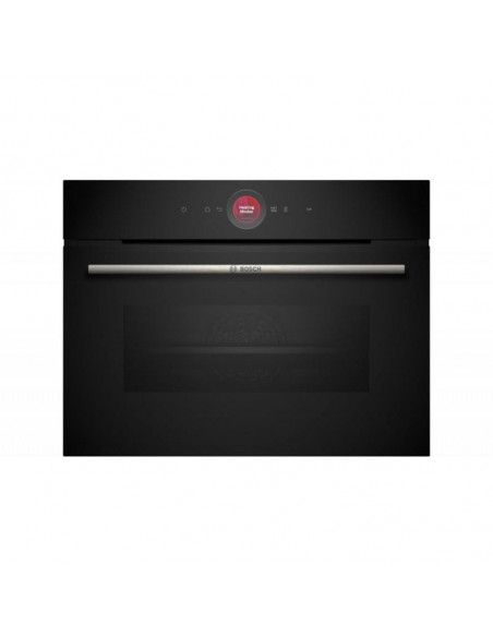 Bosch Serie 8 CBG7341B1. Tamanho do forno: Pequeno, Tipo de forno: Forno elétrico, Capacidade interior do(s) forno(s) totais: 47 l. Local de colocação: Embutido, Cor do produto: Preto, Aço inoxidável, Tipo de controlo: Toque. Tipo de relógio: Electrónico. Classe de eficiência energética: A+, Consumo energético (convencional): 0,73 kWh, Consumo energético (convecção forçada): 0,61 kWh. Quantidade de lâmpadas: 1 lâmpada(s), Tipo de lâmpada: Halogénio ;