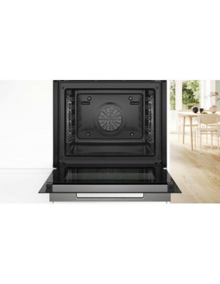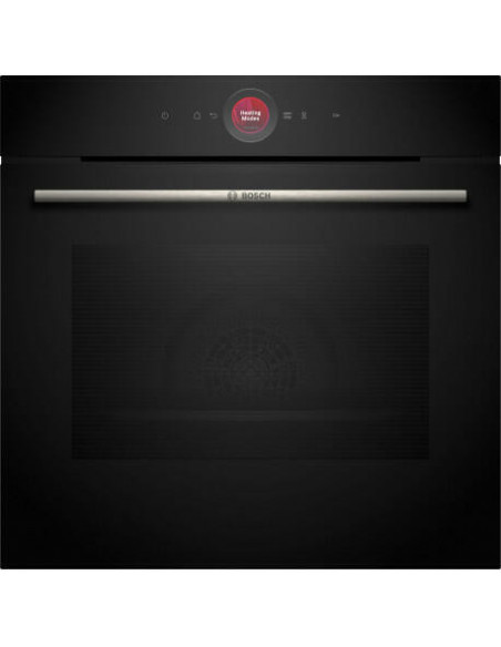 Bosch Serie 8 HBG7741B1. Tamanho do forno: Médio, Tipo de forno: Forno elétrico, Capacidade interior do(s) forno(s) totais: 71 l. Local de colocação: Embutido, Cor do produto: Preto, Tipo de controlo: Toque. Tipo de relógio: Electrónico. Classe de eficiência energética: A+, Consumo energético (convencional): 0,87 kWh, Consumo energético (convecção forçada): 0,69 kWh. Quantidade de lâmpadas: 1 lâmpada(s), Tipo de lâmpada: Halogénio