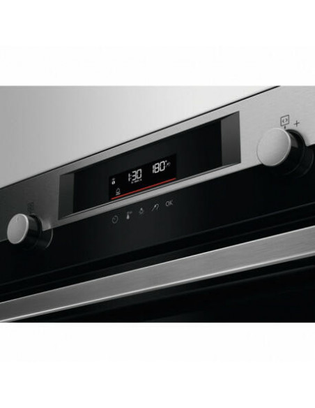 AEG BSS578271M. Tamanho do forno: Médio, Tipo de forno: Forno elétrico, Capacidade interior do(s) forno(s) totais: 72 l. Local de colocação: Embutido, Cor do produto: Aço inoxidável, Tipo de controlo: Rotativo, Toque. Classe de eficiência energética: A+, Consumo energético (convencional): 0,93 kWh, Consumo energético (convecção forçada): 0,69 kWh. Tipo de lâmpada: Halogénio. Certificados de sustentabilidade: CE
