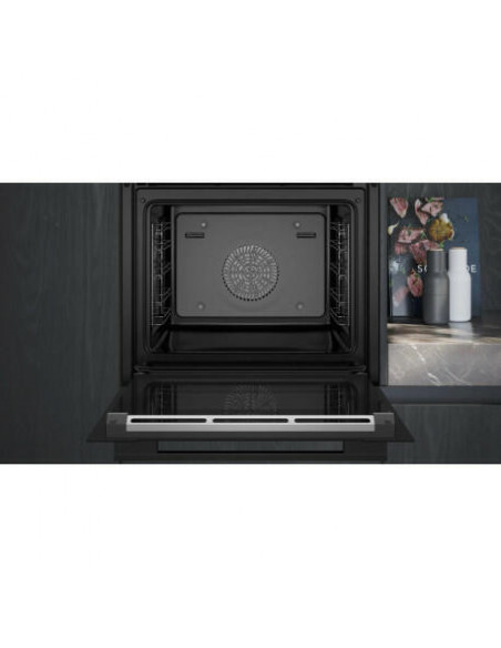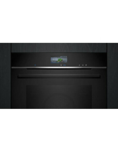 Siemens iQ700 HR736G1B1. Tamanho do forno: Médio, Tipo de forno: Forno elétrico, Capacidade interior do(s) forno(s) totais: 71 l. Local de colocação: Embutido, Cor do produto: Preto, Aço inoxidável, Tipo de controlo: Sensor. Tipo de relógio: Electrónico, Tipo de temporizador: Digital, Aplicações de controlo suportadas: Home Connect. Classe de eficiência energética: A+, Consumo energético (convencional): 0,87 kWh, Consumo energético (convecção forçada): 0,69 kWh. Comprimento do compartimento de instalação: 56,8 cm, Largura do compartimento de instalação: 55 cm, Altura do compartimento de instalação: 59,5 cm