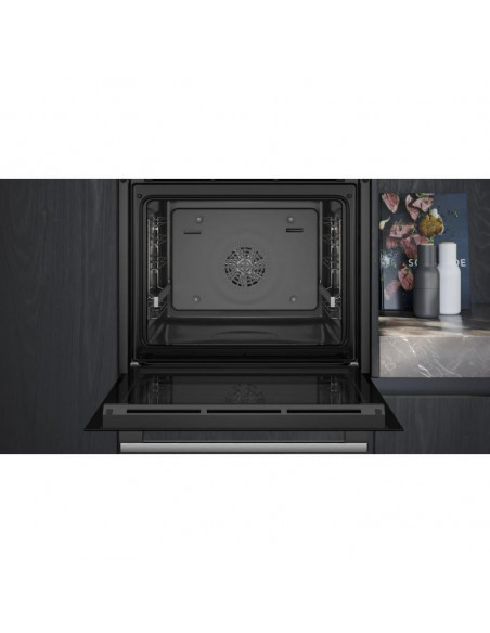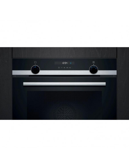 Siemens iQ500 HB537GES3. Tamanho do forno: Médio, Tipo de forno: Forno elétrico, Capacidade interior do(s) forno(s) totais: 71 l. Local de colocação: Embutido, Cor do produto: Preto, Tipo de controlo: Rotativo, Toque. Tipo de relógio: Electrónico. Classe de eficiência energética: A+, Consumo energético (convencional): 0,94 kWh, Consumo energético (convecção forçada): 0,69 kWh. Tecnologias Siemens (cozinha): cookControl ;