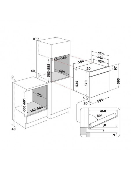 - Largura do compartimento de instalação (mín.): 56 cm