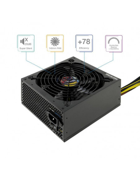 A fonte de alimentação Tooq TQAPOLO-700SP é uma solução robusta e eficiente para alimentar o seu sistema de computador. Com uma potência de 700W, esta fonte é ideal para configurações de alta performance, incluindo placas gráficas de última geração. A tecnologia PFC ativo garante uma maior eficiência energética, reduzindo o consumo de eletricidade e o calor gerado. O ventilador silencioso de 140 mm mantém os componentes internos a uma temperatura ideal, assegurando um funcionamento estável e silencioso. A fonte de alimentação TQAPOLO-700SP é compatível com as tecnologias Crossfire e SLI, tornando-a uma escolha adequada para sistemas com múltiplas placas gráficas. Os múltiplos conectores SATA, Molex e PCI-e garantem a compatibilidade com uma vasta gama de componentes. O design ATX 12V V1.3 garante a compatibilidade com a maioria das placas-mãe atuais. Para além disso, a fonte inclui mecanismos de proteção, tais como OCP, OVP, UVP, SCP, OPP e OTP, que protegem os seus componentes de potenciais danos. As certificações CE e RoHS garantem a conformidade com os mais altos padrões de segurança e ambiental. A fonte de alimentação Tooq TQAPOLO-700SP representa uma opção de confiança e alta qualidade para quem procura uma fonte de alimentação potente, eficiente e silenciosa.