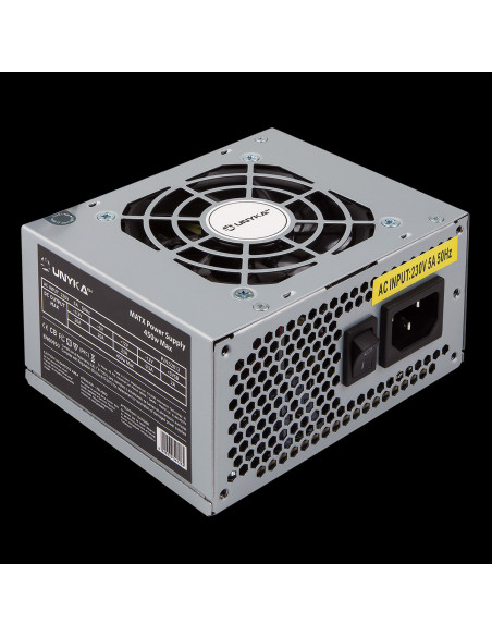 A fonte de alimentação 52017 formato SFX de 450w, dispõe de múltiplos sistemas de proteção: sobre tensão, baixa tensão, sobre intensidade e curtocircuitos.