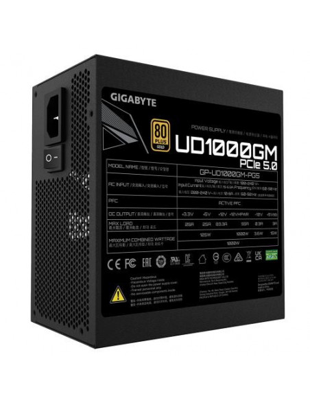 A fonte de alimentação Gigabyte UD1000GM PG5 é uma solução de alta qualidade para sistemas de computadores exigentes. Com 1000W de potência contínua, esta fonte garante energia estável e confiável para os componentes mais poderosos. A certificação 80+ Gold assegura uma alta eficiência energética, reduzindo o consumo de energia e o calor gerado. O design modular permite que utilize apenas os cabos necessários, simplificando a montagem e melhorando o fluxo de ar no gabinete. O PFC ativo melhora ainda mais a eficiência energética e a estabilidade do sistema. O grande ventilador de 12cm garante uma refrigeração silenciosa e eficaz. A fonte é compatível com a norma ATX e inclui diversos conectores para placa-mãe, placa de vídeo, unidades SATA e periféricos.