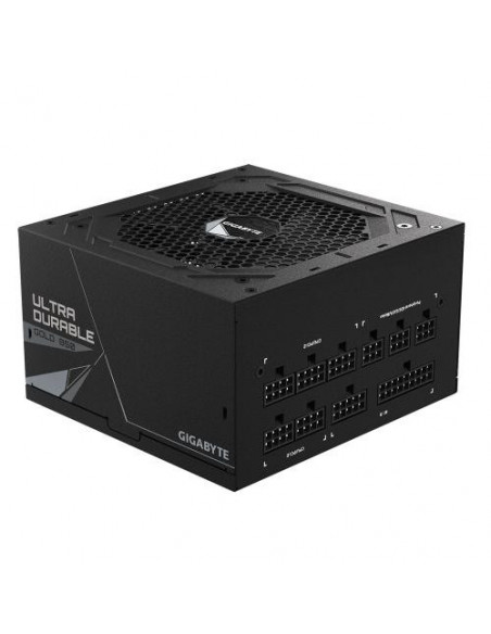 A fonte de alimentação Gigabyte UD850GM é uma unidade ATX de 850W com certificação 80+ Gold, garantindo alta eficiência energética. O seu design modular permite a utilização apenas dos cabos necessários, facilitando a gestão de cabos e melhorando o fluxo de ar dentro do gabinete. Esta fonte possui PFC ativo para estabilidade de energia e inclui várias proteções contra sobrecargas, sobretensões e curto-circuitos. É ideal para PCs de alta performance.