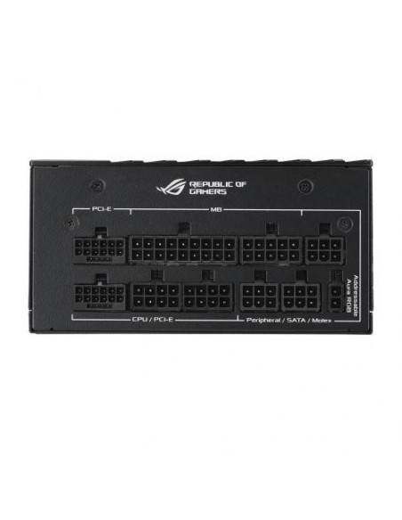 A fonte de alimentação ASUS ROG Loki é uma unidade de 1200W com certificação 80 PLUS Platinum, oferecendo eficiência energética superior e fiabilidade. O seu design totalmente modular permite utilizar apenas os cabos necessários, otimizando o fluxo de ar dentro do seu computador. O sistema de arrefecimento ativo com um ventilador de 12cm garante a estabilidade do sistema, mesmo sob alta carga. Integra iluminação ARGB para uma estética personalizada.