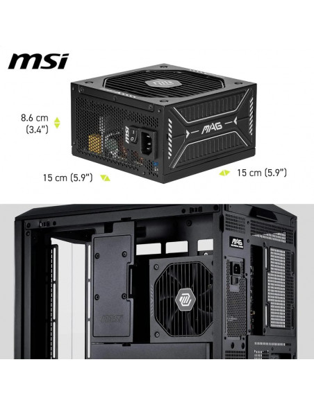 Fonte de Alimentação MSI MAG A750GLS PCIE5: 750W, 80 PLUS Gold, Modular, 120mm