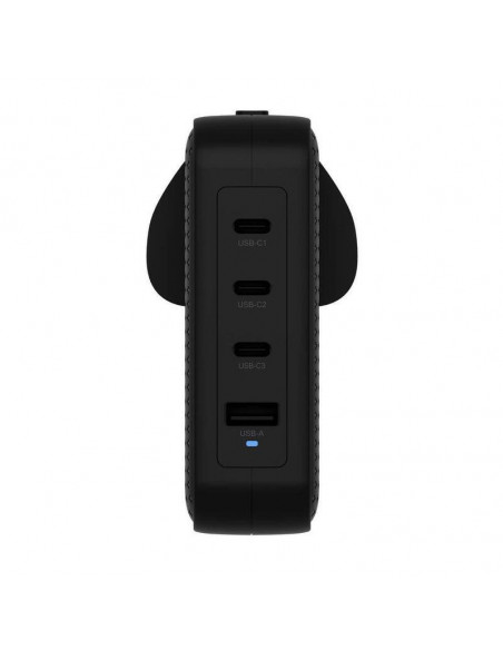 Este carregador destaca-se pela sua versatilidade de portas, oferecendo 3 portas USB Tipo-C e 1 porta USB Tipo-A, capazes de carregar uma vasta gama de dispositivos, desde smartphones e tablets até portáteis e consolas de jogos. A tecnologia GaN (Nitreto de Gálio) integra-se na sua arquitetura, garantindo uma carga rápida e eficiente com menos aquecimento e um menor consumo de energia em comparação com os carregadores tradicionais de silício. A compatibilidade com várias tecnologias de carregamento rápido, tais como Power Delivery 3.1, Quick Charge 2.0 e 3.0, assegura a optimização da velocidade de carregamento para cada dispositivo conectado.
