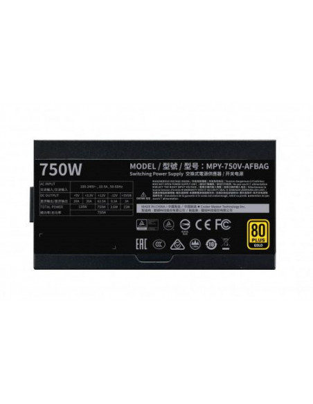 A Cooler Master V750 Gold V2 é uma fonte de alimentação de alta qualidade com potência total de 750W. A sua certificação 80+ Gold assegura uma alta eficiência energética, reduzindo o consumo de energia e o calor gerado. O sistema modular permite usar apenas os cabos necessários para a sua configuração, simplificando a montagem e melhorando o fluxo de ar no interior da sua caixa. Um único ventilador de 13,5 cm garante um arrefecimento eficiente e silencioso, mesmo sob carga pesada.