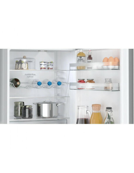 Siemens iQ300 KG36N2ICF. Capacidade total líquida: 321 l. Dobradiça da porta: Direita, Tipo de monitor: LED. Classe climática: SN-T, Nível de ruído: 35 dB. Capacidade líquida do frigorífico: 218 l, Sistema no-frost (frigorífico), Sistema multi-airflow (frigorífico), Luz interior do frigorífico. Capacidade líquida do congelador: 103 l, Capacidade de congelação: 9,5 kg/24h, Sistema no-frost (congelador). Compartimento de zona fresca. Classe de eficiência energética: C, Consumo de energia anual: 159 kWh