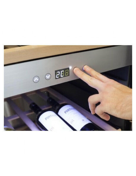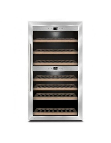 Caso WineComfort 660 Smart. Local de colocação: Independente, Cor da caixa: Inox, Cor interior: Preto. Capacidade de garrafas: 66 garrafa(s), Tipo de produto: Adega de vinho com compressor, Taxa de temperatura (zone 1): 5 - 20 °C. Carga ligada: 60 W, Voltagem de entrada AC: 230 V, Frequência de entrada AC: 50 Hz. Tipo de controlo: Toque, Tipo de lâmpada: LED. Largura: 595 mm, Profundidade: 675 mm, Altura: 1035 mm