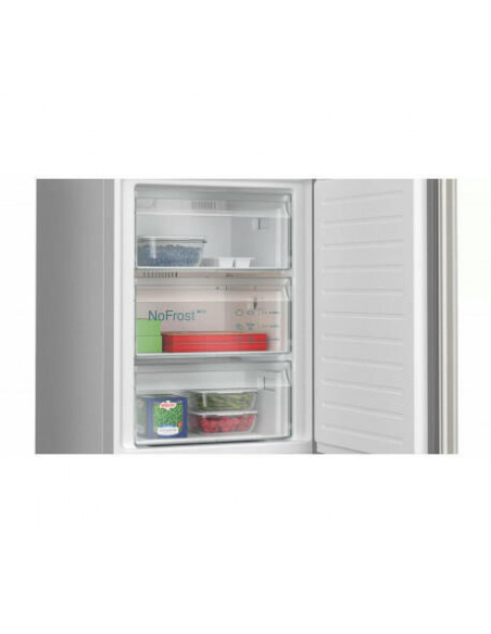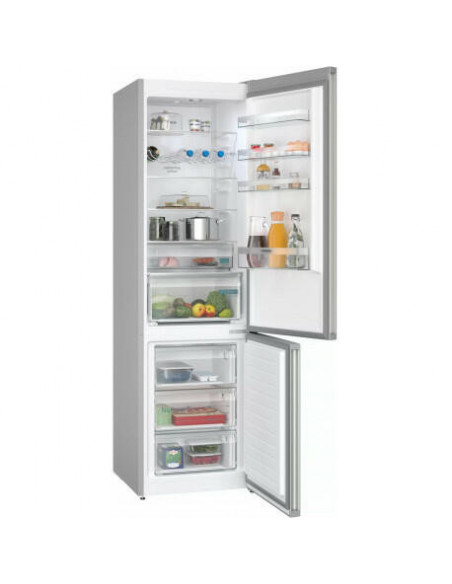 Siemens iQ300 KG39NXIBF. Capacidade total líquida: 363 l. Dobradiça da porta: Direita, Tipo de monitor: LED. Classe climática: SN-T, Nível de ruído: 33 dB. Capacidade líquida do frigorífico: 260 l, Sistema no-frost (frigorífico), Sistema multi-airflow (frigorífico), Luz interior do frigorífico. Capacidade líquida do congelador: 103 l, Capacidade de congelação: 10 kg/24h, Sistema no-frost (congelador). Compartimento de zona fresca. Classe de eficiência energética: B, Consumo de energia anual: 129 kWh