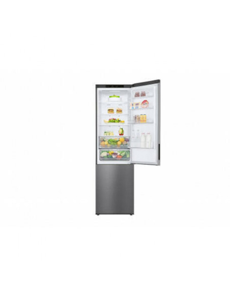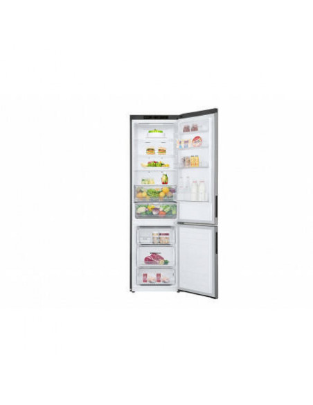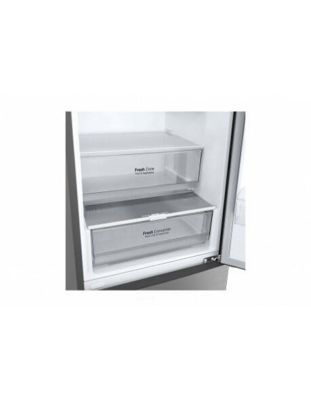LG GBP62PZNBC. Capacidade total líquida: 384 l. Dobradiça da porta: Direita. Classe climática: SN-T, Nível de ruído: 35 dB. Capacidade líquida do frigorífico: 277 l, Sistema no-frost (frigorífico), Sistema multi-airflow (frigorífico), Luz interior do frigorífico. Capacidade líquida do congelador: 107 l, Capacidade de congelação: 10 kg/24h, Sistema no-frost (congelador). Compartimento de zona fresca. Classe de eficiência energética: B, Consumo de energia anual: 137 kWh. Cor do produto: Aço inoxidável