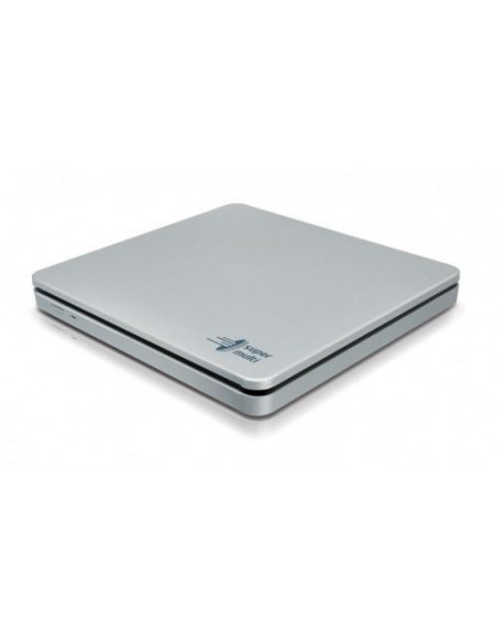Gravador de DVD externo da LG, modelo GP70NS50.AHLE10B, com design fino e carregamento por ranhura. Compatível com diversos formatos de disco (DVD+R, DVD-RW, DVD-RAM, entre outros) e oferece velocidade de gravação de até 8x para DVD. Possui conectividade USB 2.0, suporta M-DISC e é compatível com Windows 10 e MacOS.  A tecnologia Silent Play reduz o ruído durante a reprodução. Design elegante em prata.