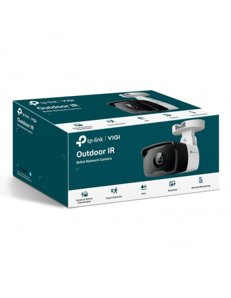 Câmara de segurança IP TP-Link VIGI C320I com ligação com fios, ideal para uso interior e exterior. Design Bullet branco, com um ângulo de visão de 85,1°. Sensor CMOS de 1/3" (25,4/3 mm) com resolução de 2MP. Fácil instalação em teto, parede ou poste.