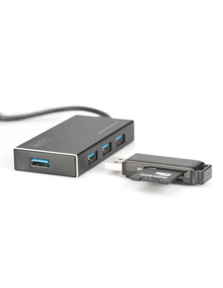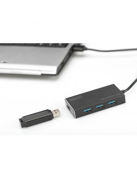Hub USB 3.0 Digitus DA-70240-1 - 4 Portas, 5V/2A, Alumínio, Preto