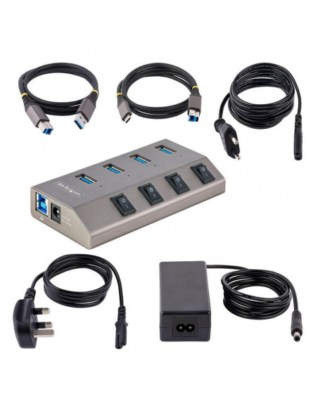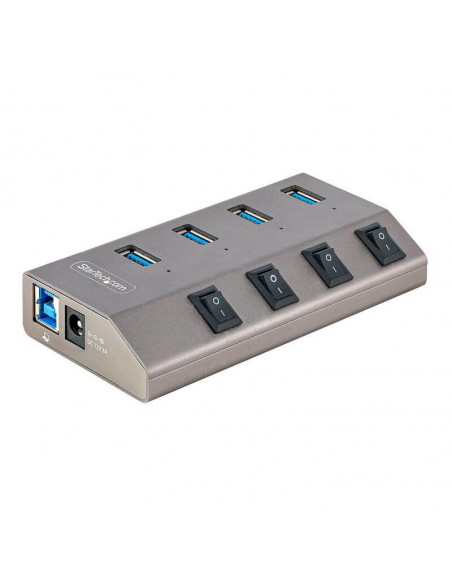 Concentrador USB-C da Startech com 4 portas e interruptores individuais.  Permite ligar vários dispositivos USB a um único porto USB-C.  Ideal para expandir a conectividade USB do seu computador ou portátil.  Design compacto e fácil de usar. * 4 Portas USB * Interruptores Individuais * Conexão USB-C * Compacto