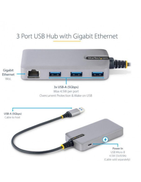 Hub USB 3.0 Startech 5 Portas Cinzento (5G3AGBB-USBA-ST)