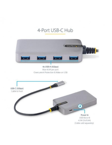 O Hub USB Startech 5G4AB-USB-C-HST é a solução ideal para expandir a conectividade USB do seu computador. Com cinco portas USB, incluindo uma porta USB-C multiporta, permite ligar múltiplos dispositivos simultaneamente, sem comprometer a velocidade ou a estabilidade. Este hub suporta velocidades de transferência de dados de até 5.000 Mbit/s (5Gbps), garantindo transferências rápidas e eficientes de ficheiros, imagens e vídeos, mesmo com múltiplos dispositivos conectados.