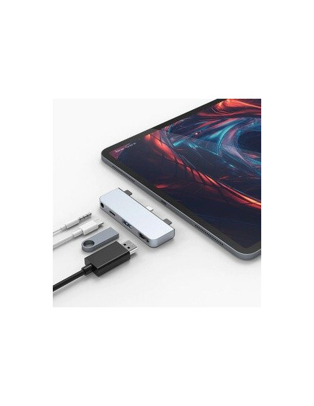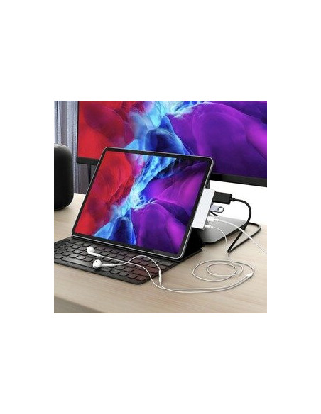 Com este hub, pode transformar o seu iPad num verdadeiro centro de produtividade, permitindo-lhe trabalhar com mais eficiência e flexibilidade. O seu design elegante e compacto garante que o hub se integra perfeitamente com o seu iPad, sem comprometer a portabilidade. A instalação e utilização são extremamente simples, bastando conectar o hub à porta USB-C do seu iPad e conectar os seus periféricos às portas disponíveis.