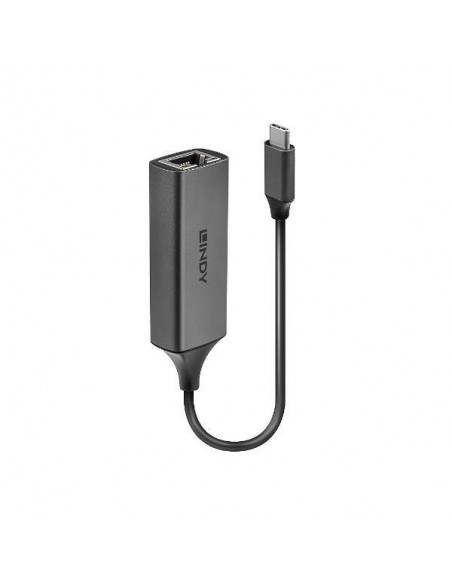 Conversor USB 3.2 Tipo C para Gigabit Ethernet da Lindy. Conexão estável e de alta velocidade.  Design compacto e autoalimentado. Cor cinzenta. Garantia de 24 meses.