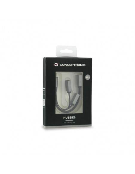 Hub USB Conceptronic HUBBIES01G: 3 Portas (2x USB 2.0, 1x USB 3.0), USB-C, Cinza
