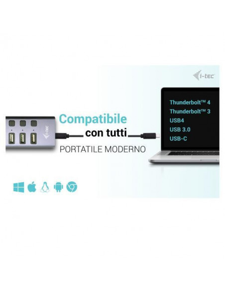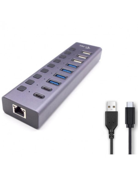 O Hub USB I-Tec CACHARGEHUB9LAN é uma solução versátil para ampliar significativamente as suas opções de conectividade.  Com nove portas USB, combinando portas USB-A e USB-C, todas com capacidade de carregamento, este hub garante compatibilidade com uma ampla gama de dispositivos, desde periféricos tradicionais a smartphones e tablets.  A adição de uma porta LAN Gigabit Ethernet permite uma conexão de rede rápida e estável, ideal para transferência de arquivos ou navegação na internet em alta velocidade.  O adaptador de energia de 60W incluído fornece energia suficiente para alimentar todos os dispositivos conectados simultaneamente, evitando interrupções e atrasos.  O design é compacto e elegante, em cor cinza, medindo 180 x 47 x 23 mm e pesando 152g. O comprimento do cabo é de 100 cm.  A embalagem inclui o hub, o adaptador de energia e o manual do utilizador. A garantia de 24 meses oferece tranquilidade e confiança na qualidade do produto.