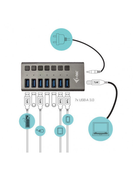 Hub de carregamento i-tec USB 3.0 7 portas + Carregador de corrente 36 W