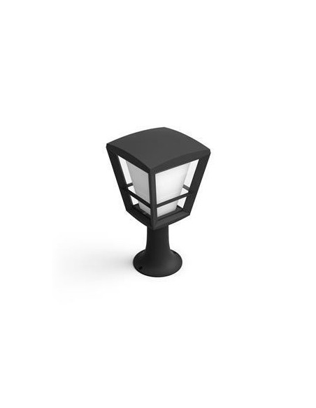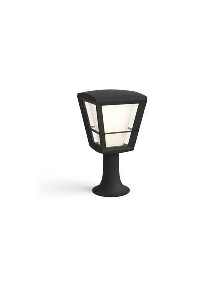 Philips Hue White and colour ambience Lámpara de pedestal para exteriores Econic. Tipo: Iluminación en poste/pedestal inteligente, Color del producto: Negro, Tipo de bombilla: LED. Clasificación energética de la bombilla incluida: A, Voltaje de entrada AC: 220 - 240 V, Frecuencia de entrada AC: 50 - 60 Hz. Ancho: 163 mm, Profundidad: 163 mm, Altura: 322 mm. Dimensiones del embalaje (alto x alto x peso): 20,7 x 20,7 x 37 mm, Ancho del paquete: 207 mm, Profundidad del paquete: 207 mm. Vatios de la bombilla incluida: 15 W