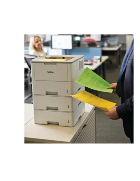 Impressora laser monocromática Brother HL-L6410DNTT1BOM, com velocidade de impressão de 50 ppm, impressão duplex automática, conectividade Wi-Fi e Ethernet, e ecrã tátil a cores de 8,9 polegadas. Ideal para grandes volumes de impressão.
