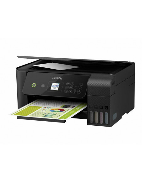 Epson EcoTank ET-2721. Tecnologia de impressão: Jato de tinta, Impressão: Impressão a cores, Resolução Máxima: 5760 x 1440 DPI, Velocidade de impressão (cores, qualidade normal, A4/US Letter): 15 ppm. Digitalização: Digitalização a cores, Resolução óptica de digitalização: 1200 x 2400 DPI. Dimensão máxima de papel ISO A-series: A4. Wi-Fi. Cor da caixa: Preto
