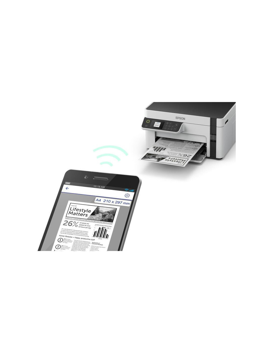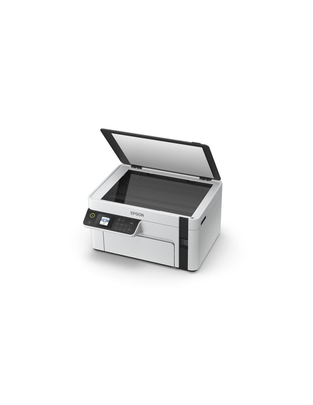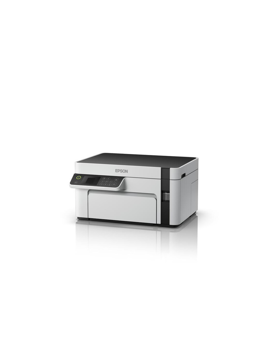 Impressora multifuncional Epson EcoTank ET-M2120 monocromática para impressão, cópia e digitalização de documentos A4. Tecnologia de jato de tinta, resolução máxima de 1440 x 720 DPI para impressão e 2400 x 1200 DPI para digitalização. Conectividade Wi-Fi e impressão directa.  Design em preto e branco.
