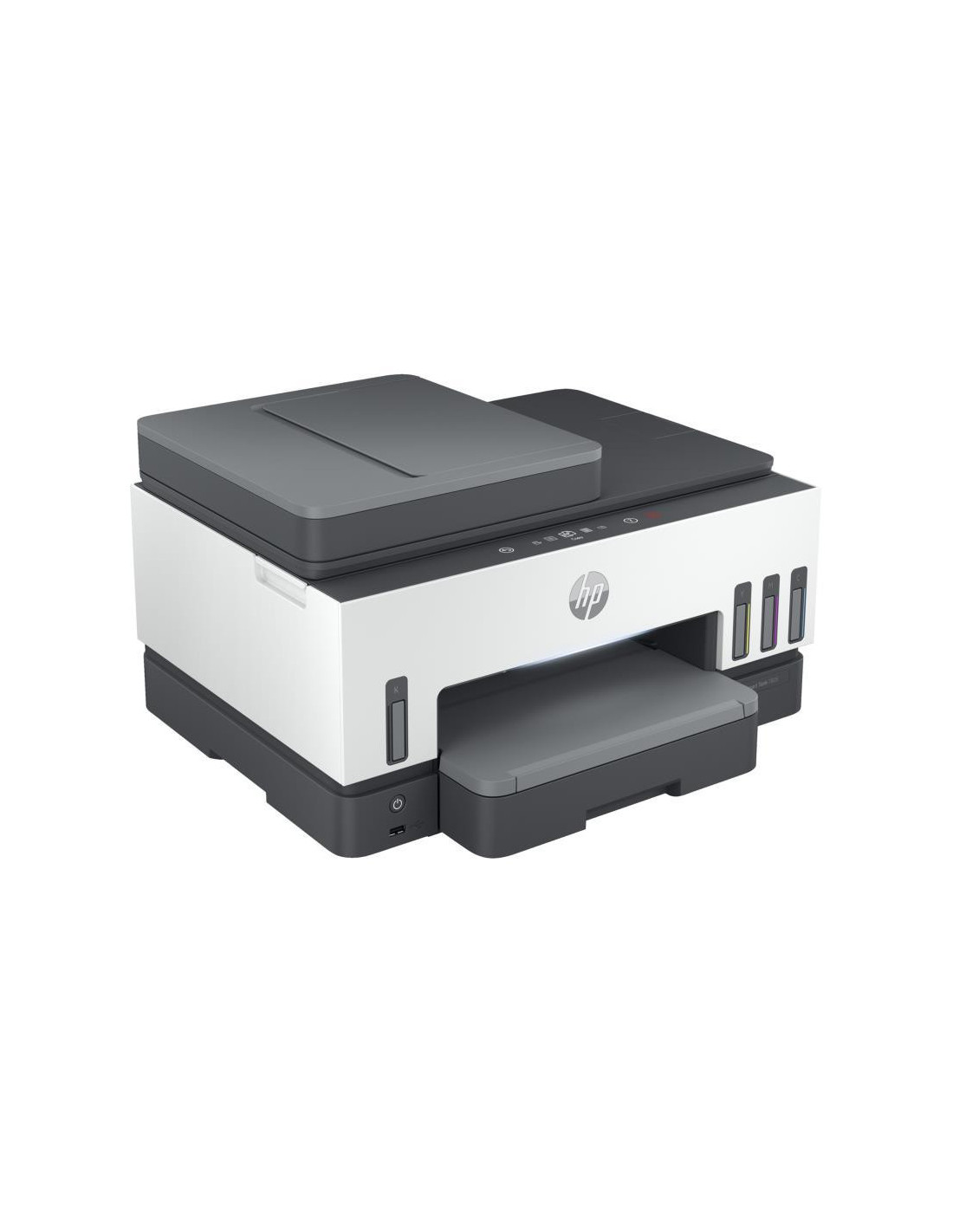 HP Smart Tank Multifunções 7605, Cor, Impressora para Casa e escritório em casa, Impressão, cópia, digitalização, fax, ADF e ligação sem fios, ADF para 35 folhas; Digitalização para PDF; Impressão frente e verso. Tecnologia de impressão: Jato de tinta térmico, Impressão: Impressão a cores, Resolução Máxima: 4800 x 1200 DPI, Velocidade de impressão (cores, qualidade normal, A4/US Letter): 9 ppm. Cópia: Cópia a cores, Resolução de cópia máxima: 600 x 600 DPI. Digitalização: Digitalização a cores, Resolução óptica de digitalização: 1200 x 1200 DPI. Envio de fax: Fax a cores. Funções duplex: Fax. Dimensão máxima de papel ISO A-series: A4. Wi-Fi. Impressão directa. Cor do produto: Cinzento ;