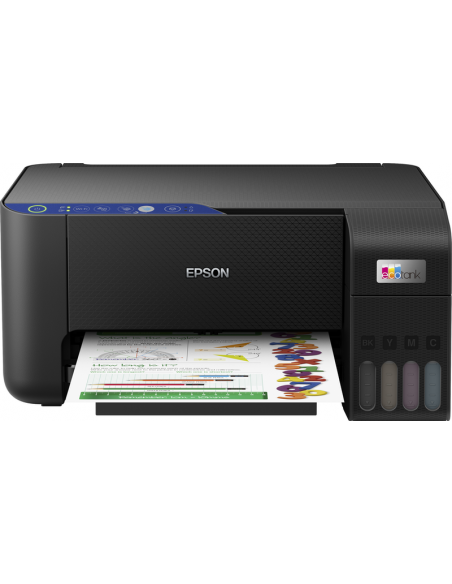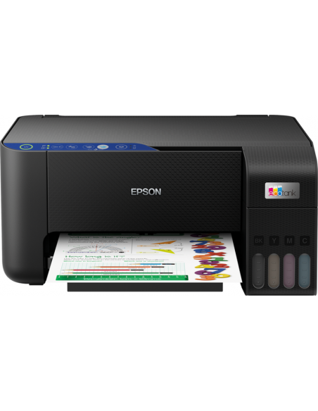 A Epson EcoTank ET-2811 é uma impressora multifunções jato de tinta, projetada para uso doméstico e em pequenos escritórios. Este modelo destaca-se pelo seu sistema EcoTank, que substitui os tradicionais tinteiros por tanques de tinta recarregáveis de alta capacidade, proporcionando uma maior autonomia e economia a longo prazo. A impressora oferece as funções de impressão, cópia e digitalização, tornando-a numa solução completa para as necessidades diárias de documentação.