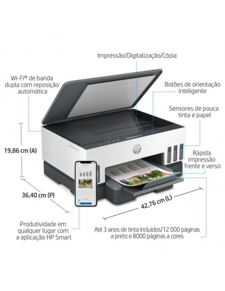 Impressora Multifunções HP Smart Tank 7005: Wi-Fi, Duplex, Recarregável, Branca