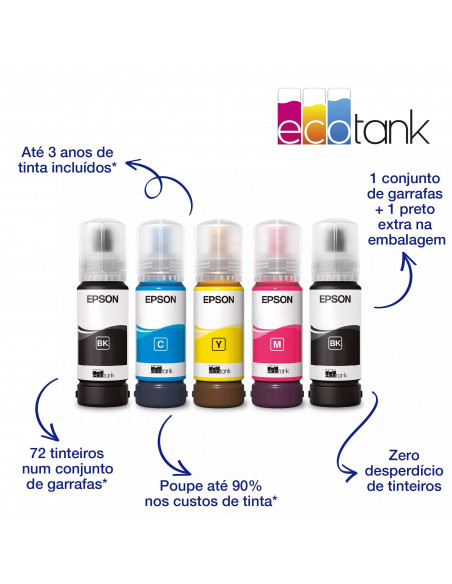 Para garantir o bom funcionamento da impressora e a qualidade das impressões, a manutenção adequada é crucial. Recomenda-se a limpeza regular dos cabeçotes de impressão e a utilização de tinteiros originais Epson. A impressora é compatível com os sistemas operativos Windows e Mac OS, assegurando a sua utilização numa ampla gama de configurações. A certificação ENERGY STAR demonstra a eficiência energética do equipamento, minimizando o consumo de energia. A EcoTank ET-2840 representa uma solução completa e eficiente para as suas necessidades de impressão, digitalização e cópia.