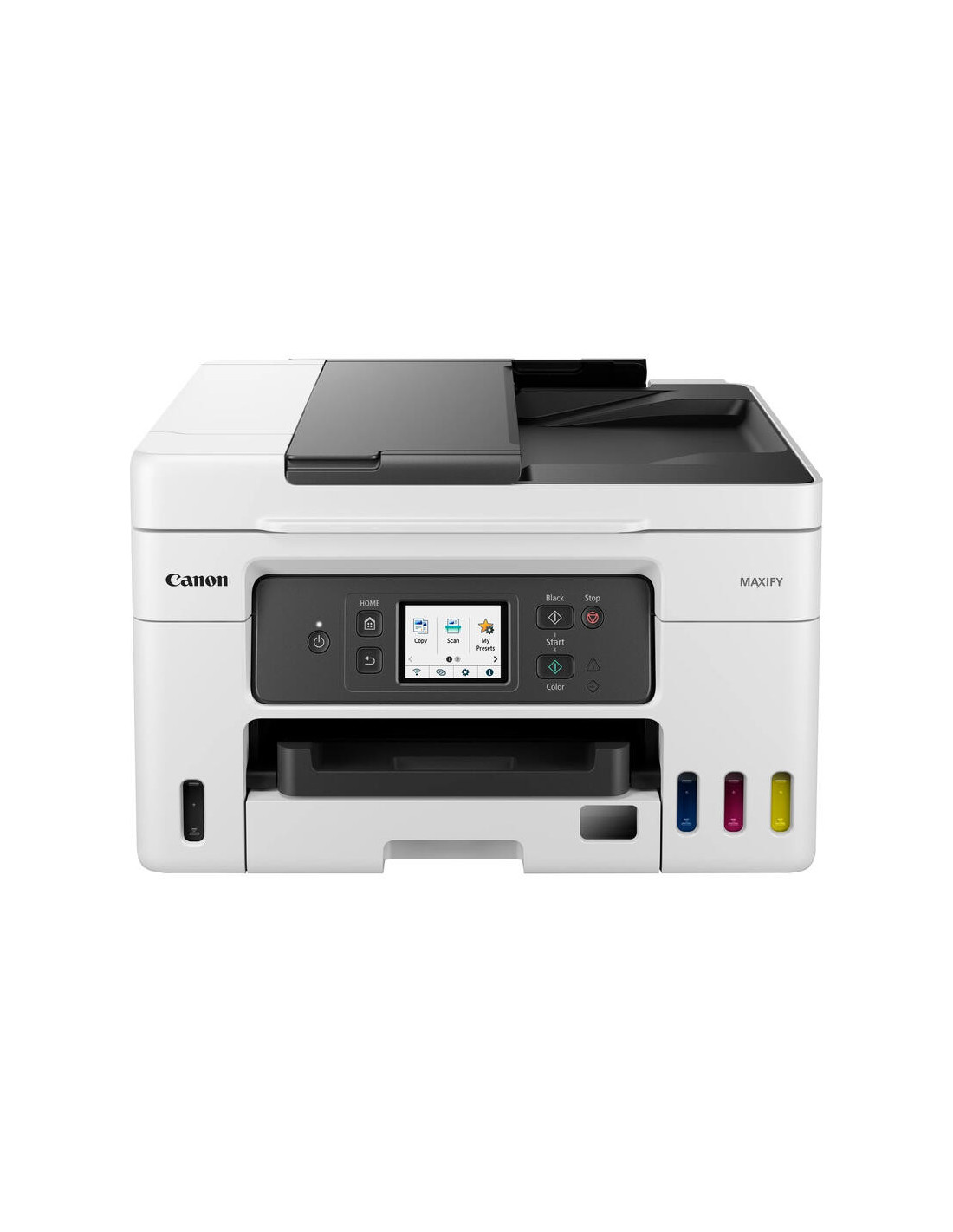 A Canon MAXIFY GX4050 é uma impressora multifunções A4 com sistema de tanque de tinta, ideal para escritórios e utilização doméstica. Oferece impressão, cópia, digitalização e fax de alta qualidade. Destaca pela sua velocidade, eficiência e baixo custo de impressão.