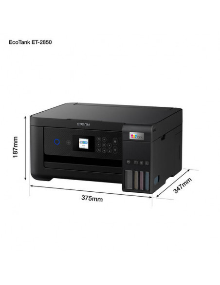 Esta multifunções possui conectividade Wi-Fi, tornando a impressão e digitalização fáceis a partir de computadores, smartphones e tablets. Compatível com Apple AirPrint, simplifica a impressão a partir de dispositivos Apple. A impressora ainda possui um visor LCD de 3,81 cm (1.5") para facilitar a navegação e o controle das funções. O design compacto e a cor preta tornam a EcoTank ET-2850 adequada para qualquer ambiente.