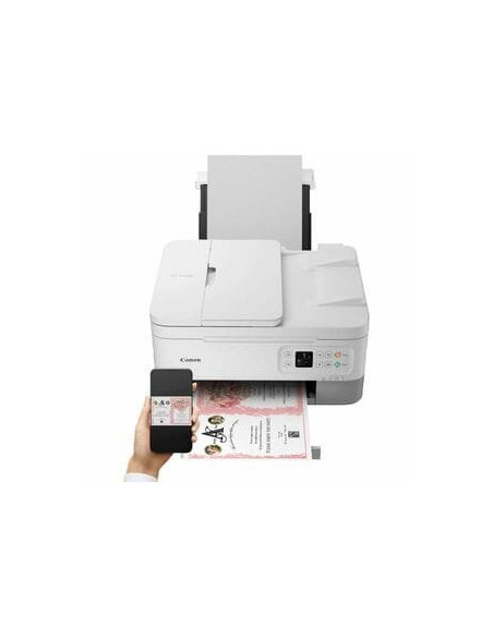 Impresora de inyección de tinta multifunción Canon PIXMA TS7451i Inalámbrico - Color - Blanco - Copiadora/Impresora/Escáner - 4800 x 1200 dpi Impresión - Dúplex impresión Automático - Color De Superficie Plana Escáner - 1200 x 2400 - Conexión inalámbrica Wi-Fi - Apple AirPrint, Mopria, Canon PRINT Inkjet/SELPHY, Aplicación/Programa editor Easy-PhotoPrint, Mensaje en aplicación de impresión, PIXMA Cloud Link, Google Cloud Print, Wi-Fi Direct, PictBridge (LAN inalábrica) - USB