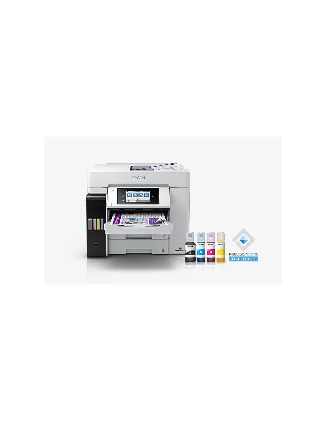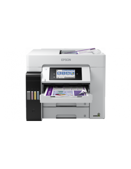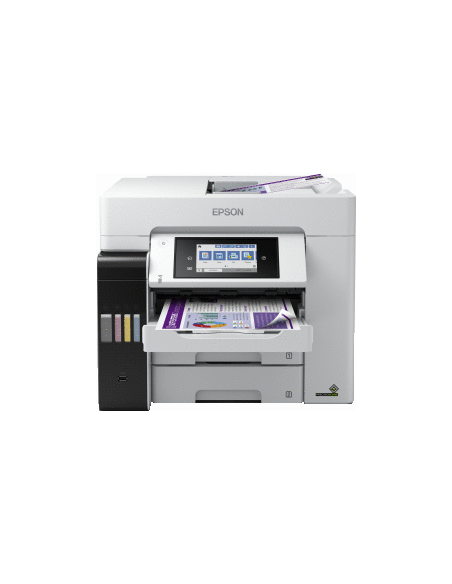 Com um design moderno e funcional, a Epson EcoTank ET-5880 integra-se facilmente em qualquer ambiente de trabalho. A sua interface intuitiva e o painel de controlo com ecrã tátil de 4.3 polegadas facilitam a utilização e configuração. A conectividade é um dos seus pontos fortes, oferecendo opções como Wi-Fi, Wi-Fi Direct e Ethernet, permitindo a impressão a partir de dispositivos móveis e a integração em redes locais.