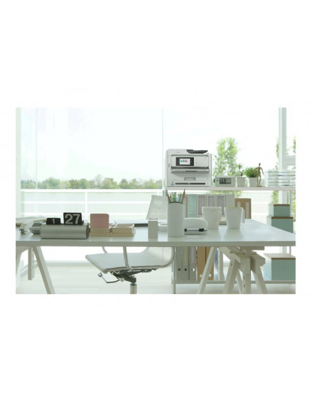 Descrição do produto: Epson WorkForce Pro WF-M5899DWF - impressora multi-funções - P/B;  Tipo de dispositivo: Impressora multi-funções;  Tipo de fax: Super G3 - papel liso;  Tecnologia de impressão: Jacto de tinta (monocromático);  Tecnologia Jacto de Tinta: Epson PrecisionCore;  Ciclo de carga mensal (máx.): 75000 páginas;  Volume Mensal Recomendado: 500 - 5.000 páginas;  Resolução máxima de cópia: Até 600 x 1200 dpi;  Grau de Resolução de Reprodução Máx.: Até 600 x 1200 dpi;  Velocidade máxima de impressão: Até 25 ppm;  Resolução máxima da impressão: Até 1200 x 2400 ppp;  Grau de Resolução de Impressão Máx.: Até 1200 x 2400 ppp;  Velocidade máxima de transmissão do fax: 33.6 Kbps;  Digitalização: 1200 x 2400 ppp;  Tamanho original: 216 x 297 mm (máx.);  Tipo original: Folhas;  Capacidade do alimentador de documentos: 50 folhas;  Tamanho da mídia: Legal (216 x 356 mm), A4 (210 x 297 mm) (máx.);  Tipo de mídia: Envelopes, papel liso, etiquetas, papel reciclado, papel fotográfico brilhante, postais, papel colorido, papel timbrado;  Capacidade de mídia padrão: 330 folhas;  Capacidade máxima de mídia: 1830 folhas;  Capacidade do alimentador auxiliar: 80 folhas;  Capacidade das bandejas de saída: 150 folhas;  Impressão dos dois lados automática: Sim (cópia) Sim (impressão) Sim (scanning);  Disponibilidade de Conexão: Sim;  Interface: USB 2.0, Gigabit LAN, Wi-Fi(ac);  Habilitado a AirPrint: Sim;  Características de Máquina de Escritório: Digitalizar para e-mail, scan para Nuvem, digitalizar para FTP, de fax para pasta, fax para e-mail, scan para host USB, impressão a partir de dispositivos móveis, digitalizar para pasta de rede;  Potência: AC 120/230 V (50/60Hz);  Dimensões (LxPxA): 42.5 cm x 53.5 cm x 35.7 cm;  Peso: 19 kg;