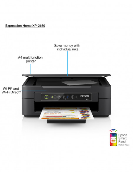 A Epson Expression Home XP-2150 é uma impressora multifunções jato de tinta concebida para proporcionar impressões de alta qualidade, digitalização e cópia para uso doméstico e pequenos escritórios. A sua tecnologia de impressão Micro Piezo da Epson garante impressões nítidas e vibrantes com uma resolução de até 5760 x 1440 DPI, ideal para documentos e fotografias.